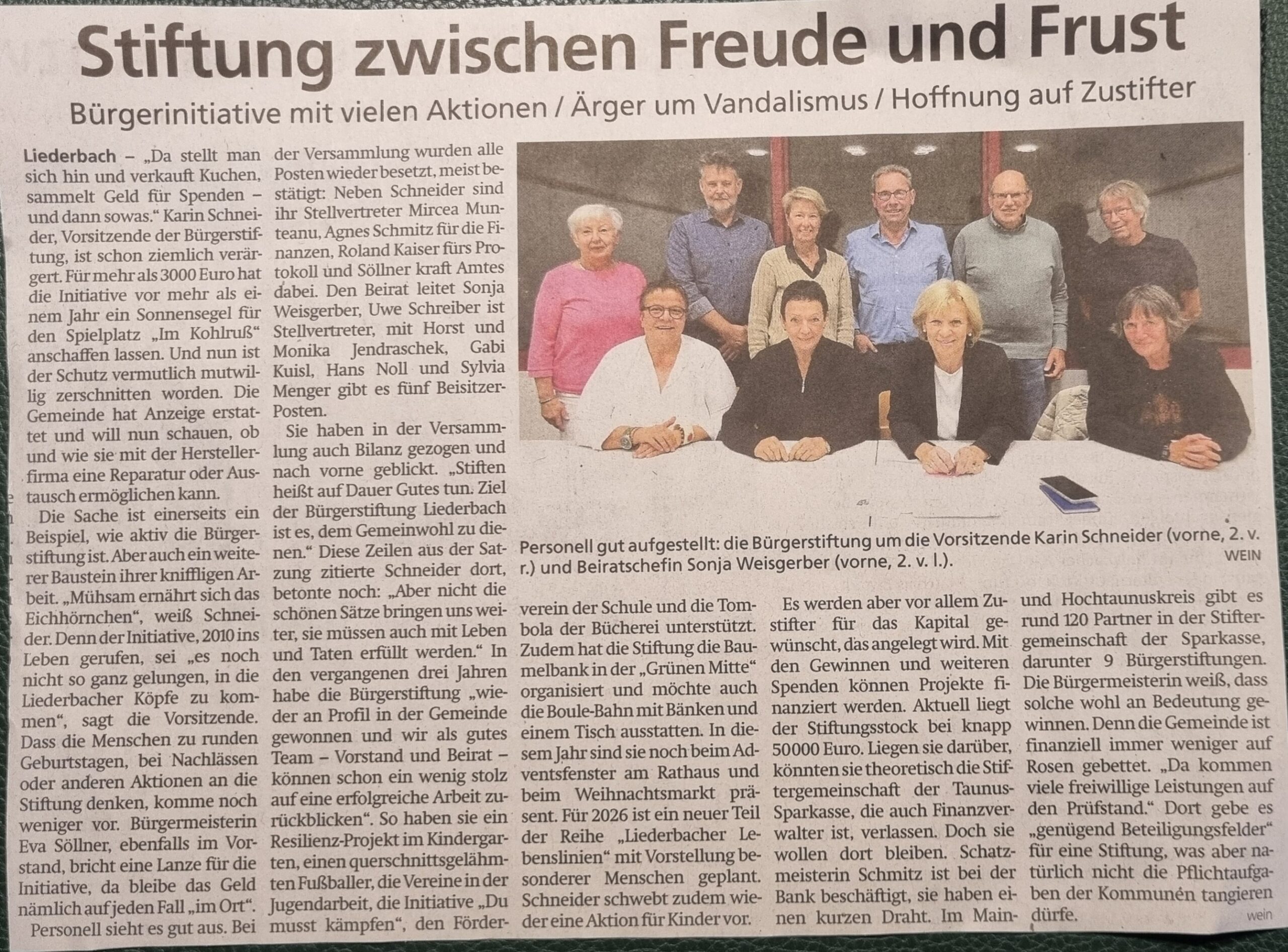 Die Bürgerstiftung agiert unter dem Dach der Stiftergemeinschaft der Taunus Sparkasse und ist eine Bürgerstiftung in der Gemeinde Liederbach.